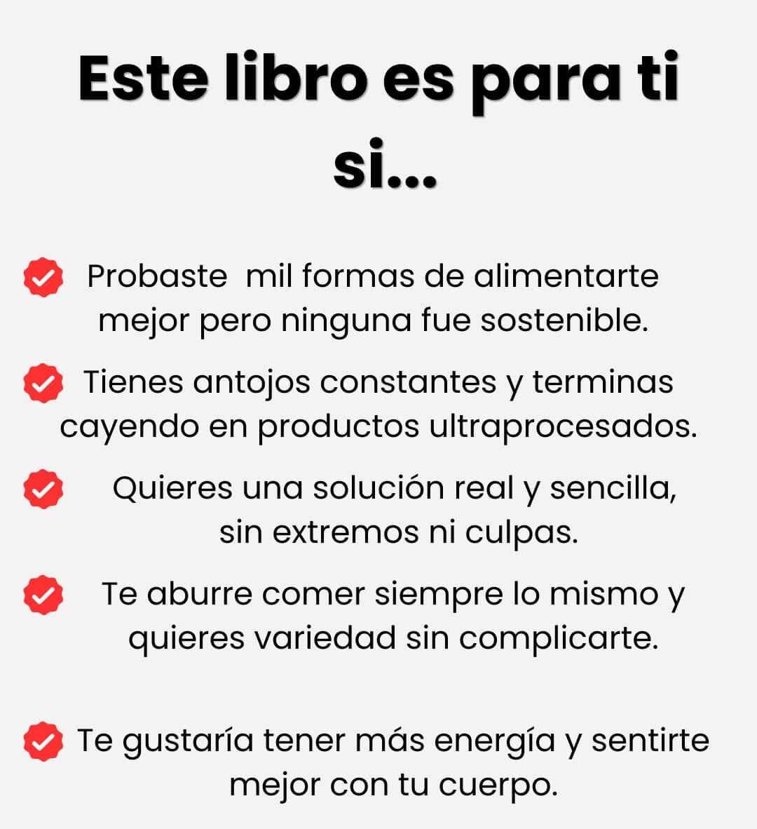 Porque este libro te ahorra tiempo, errores y frustraciones. En lugar de perderte entre recetas sueltas o poco claras, tenés todo en un solo lugar: organizado, probado, con resultados que funcionan desde el principio y pensados para ayudarte a comer mejor.
